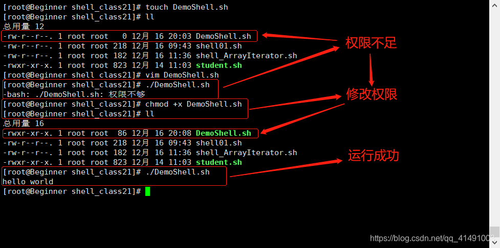 | 第二种:采用输入脚本的绝对路径或者相对路径执行脚本(必须具有可执行权限+x,推荐采用这种方式) | |