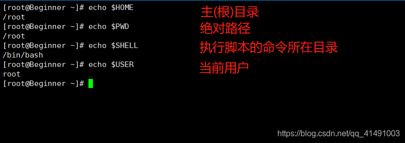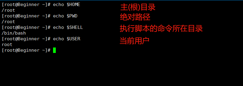 $HOME、$PWD、$SHELL、$USER等