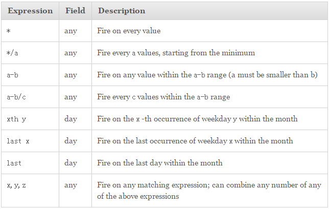day_of_week (int|str) – number or name of weekday (0-6 or mon,tue,wed,thu,fri,sat,sun) - (表示一周中的第几天,既可以用0-6表示也可以用其英语缩写表示)