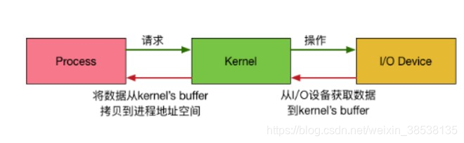 - 内核接受到请求后,从I/O设备中获取数据到内核buffer中;