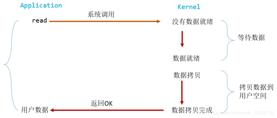例如当用户进程调用了 read 系统调用, kernel 就开始了 IO操作的 准备数据阶段。对于网络 IO来说,很多时候数据在一开始还没到达(比如,还没收到一个完整的数据包),