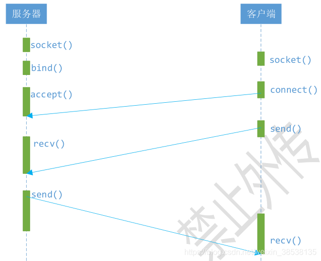 网络编程接口中listen(), send(), recv()等接口都是阻塞的,例如下边简单的“一问一答”的服务器模型。