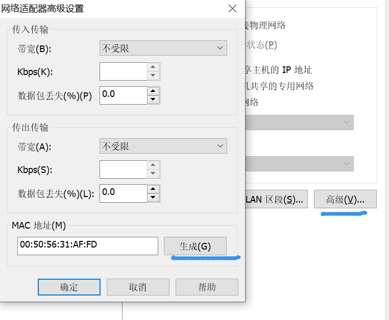 然后在高级里可以生成新的MAC地址,这样就可以新建一个网卡了。