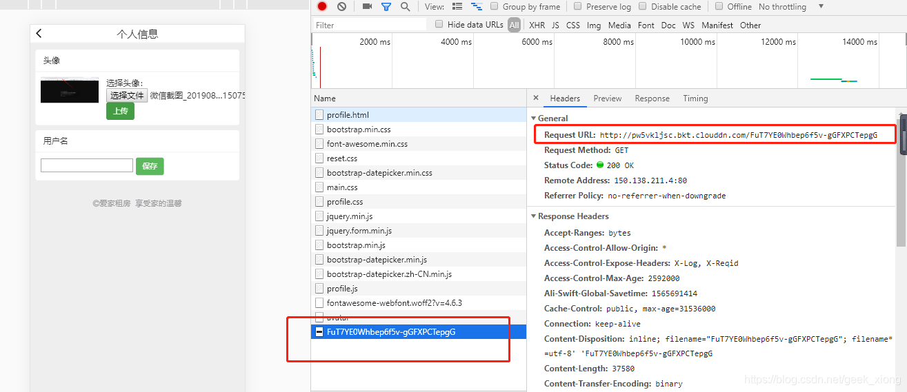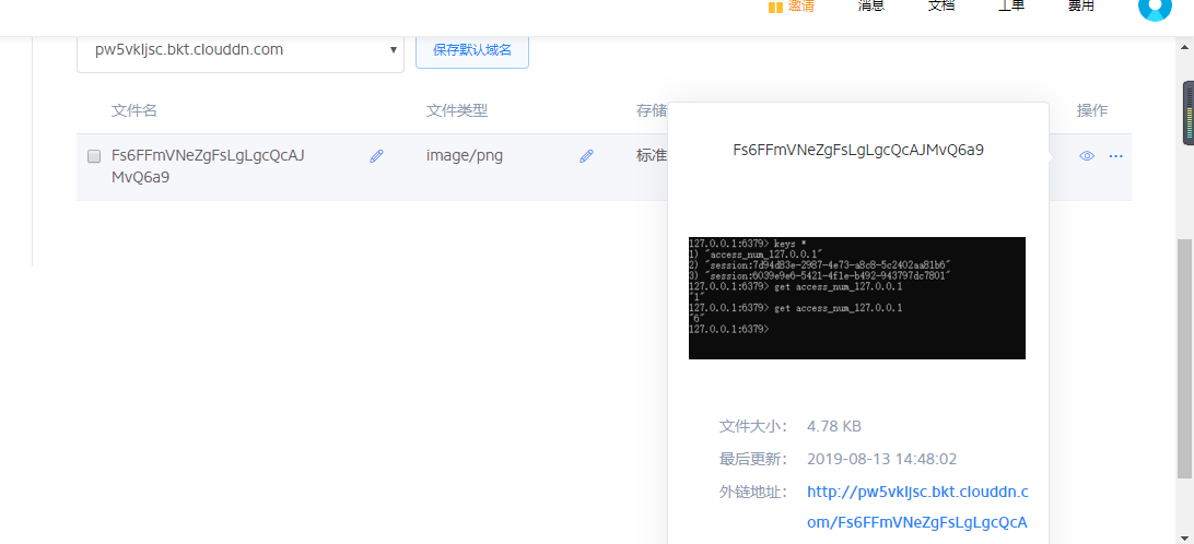 其中有个“status_code”的结果是200,表示上传成功了,其次“key”其实就是上传后的图片的名字,可根据七牛存储融合 CDN 测试域名加上key就可以访问到刚上传的图片了