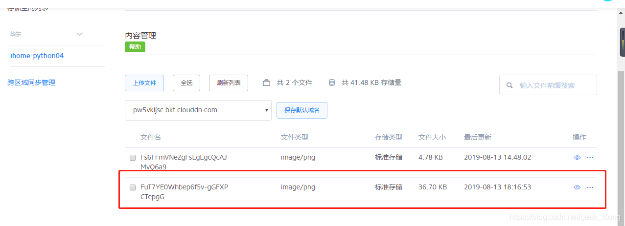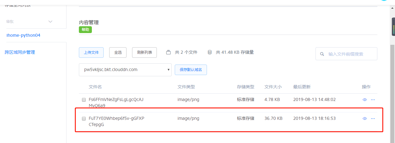 bucket_name = 'ihome-python04' # 七牛中新建的存储名