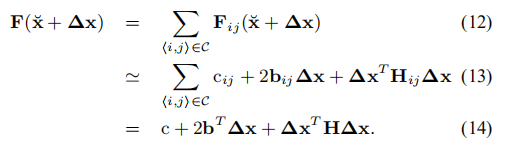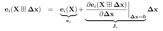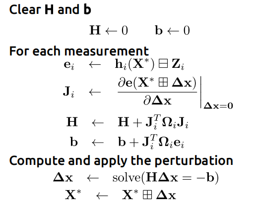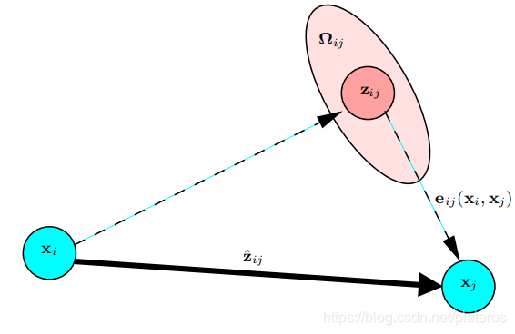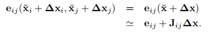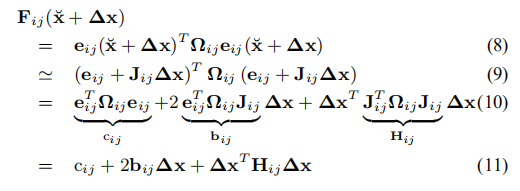 。该值与“真实”的Pose 的差,构成了这条边的约束。由于边的约束是标量,因此取这个差的平方。R表示为运动模型的协方差。公式如下,