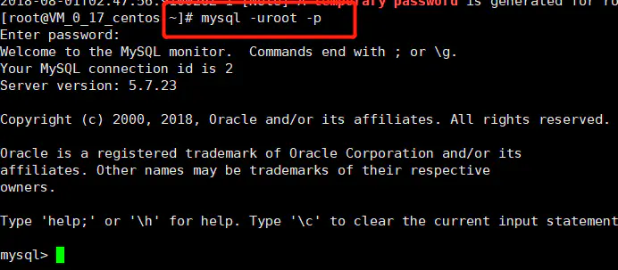 登录数据库:这里-p之后不用输入密码,回车后再输入。改过密码之后登录则是直接在-p后加密码了。