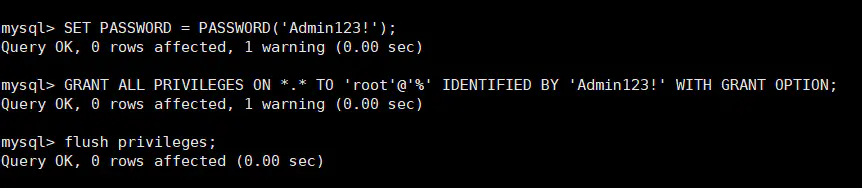 先设置刚才的密码可以远程登录,然后使用flush命令使配置立即生效。