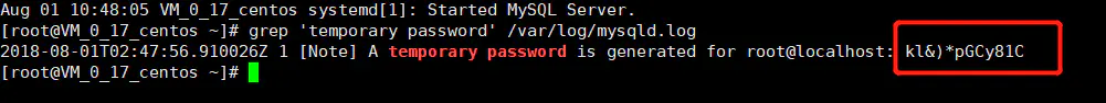 找到密码: 红框的地方就是密码grep 'temporary password' /var/log/mysqld.log