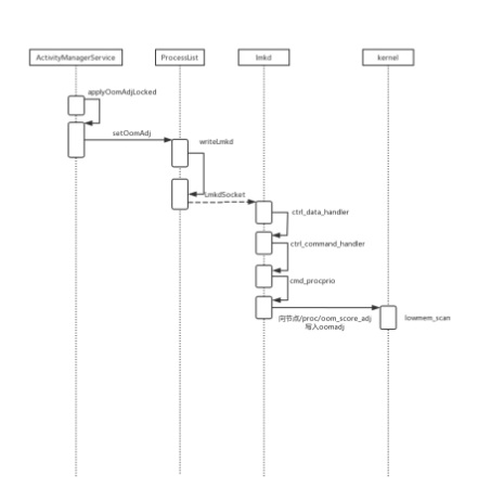 从Zygote fork出来的进程都会被储存在 ActivityManagerService.mLruProcesses 列表中,由ActivityManagerService进行统一管理。ActivityManagerService会根据进程状态去更新进程所对应的 oom_adj 的值,当内存达到一定的阈值会触发清理 oom_adj 高的进程。