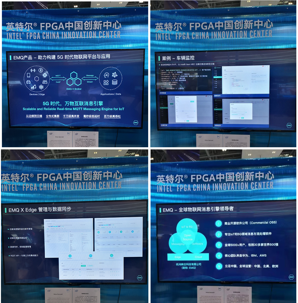 英特尔智能创新国际展区依托重庆智博会汇聚顶尖科技创新项目,展示前沿科技应用,打造智能化和多元化的智慧未来场景与社区。 值得注意的是,“英特尔智能创新展区”展示了 EMQ 物联网 MEC 边缘设备接入及管理平台。