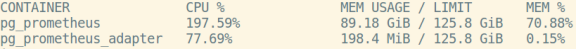 内存上不太能看出优劣,timescaledb用的shared mem比较多,我看了pg_prometheus启动后使用了timescale-tune工具自动优化后配置的shared memory为32GB,因此即使timescaledb占了89GB之多,其实通过free -g查看主机内存并没有增加实际的used消耗。