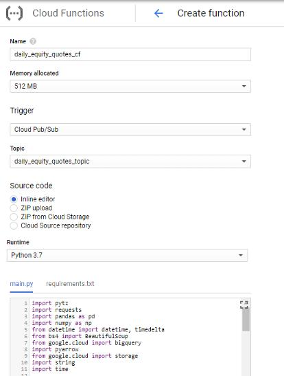 一拿到数据,就可以将它们储存进BigQuery(BQ)表以备之后使用。所有的数据会在云函数(Cloud Function)中,可安排在每个工作日市场关闭后运行,以获得最新的收盘价。