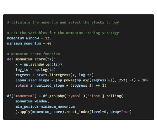 有了历史数据和交易金额后,就可以根据策略选择股票了。第一步是找出拥有最高动量的股票。