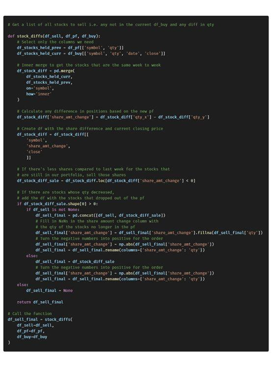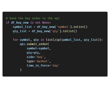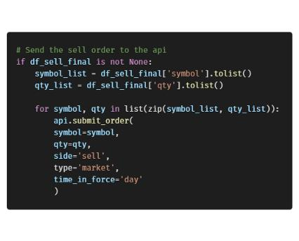 有了需要卖掉的股票清单(如果有的话),就可以将它发送到AlpacaAPI来运行指令。