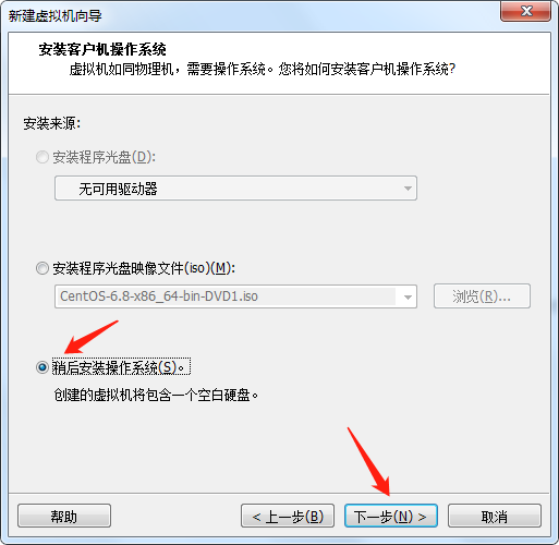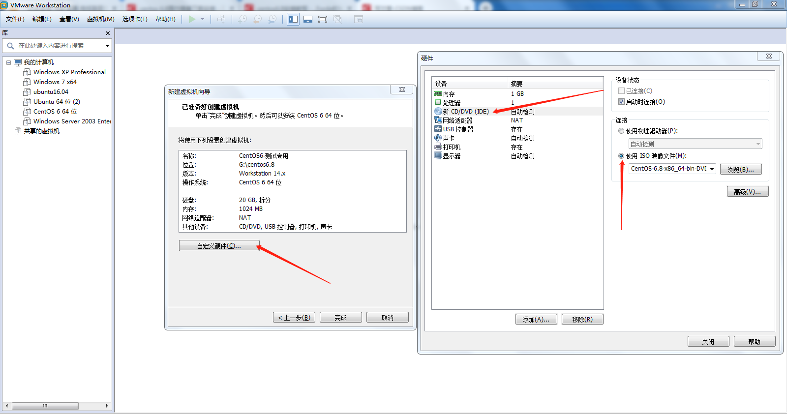 - 到如下页面,选择准备好的centos6.iso镜像文件,最后点击完成即可