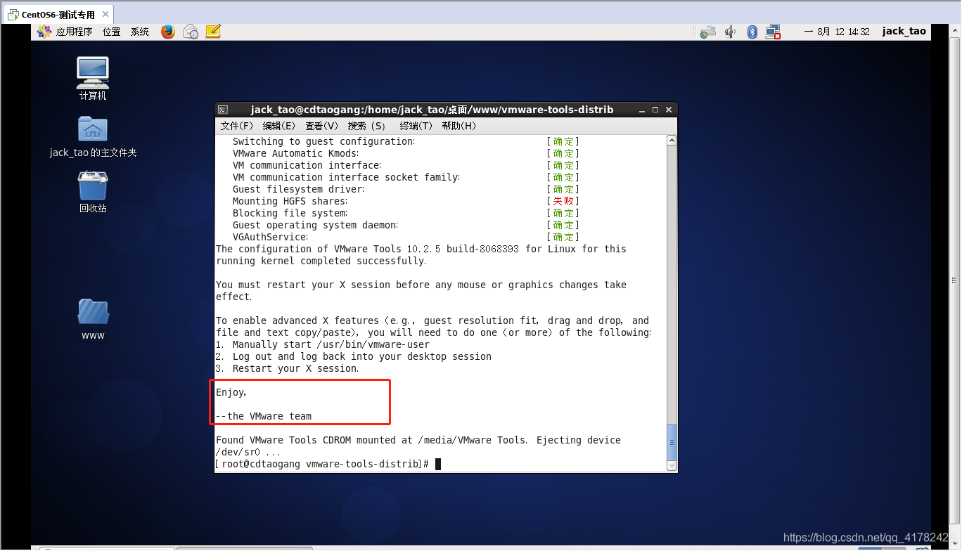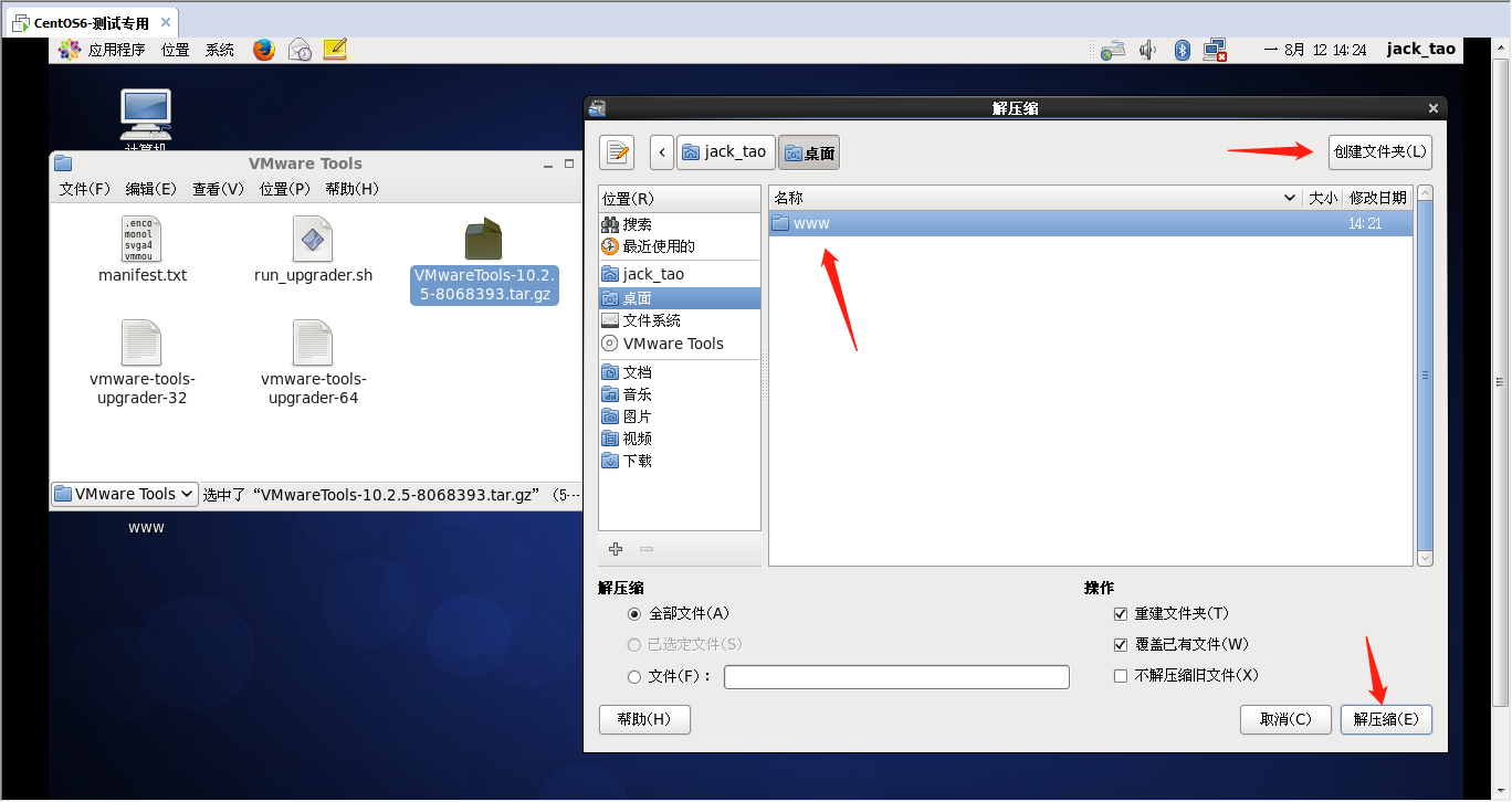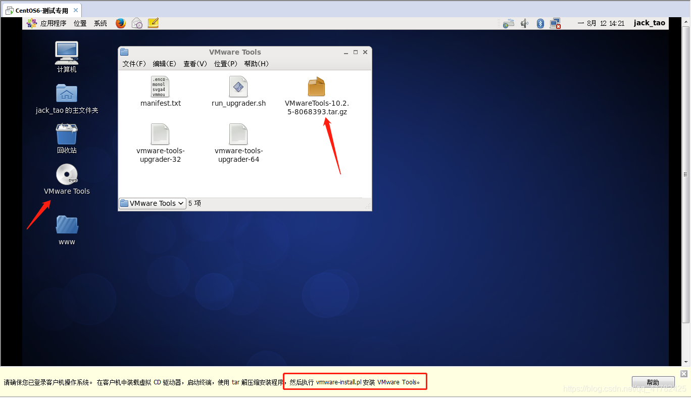 - 会在弹出一个VMware Tools的压缩包文件,将该文件解压到桌面的文件夹中
