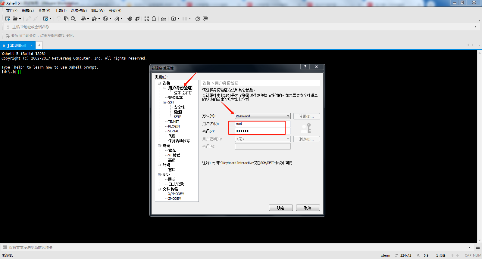 - 点击用户身份验证,输入目标主机的用户以及用户密码