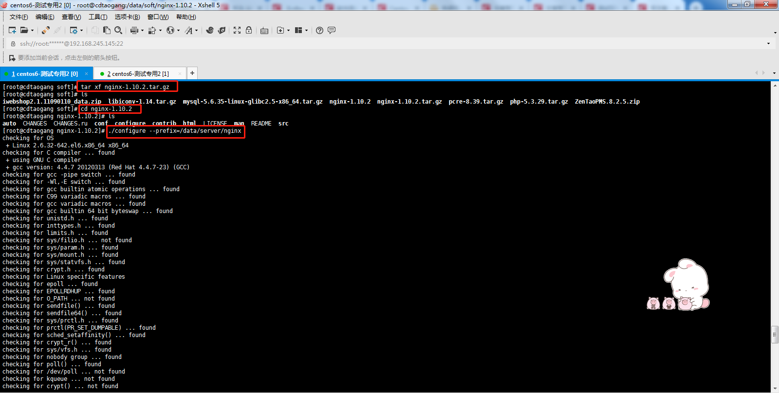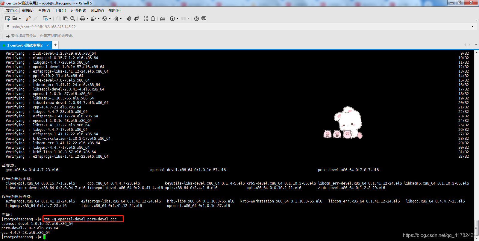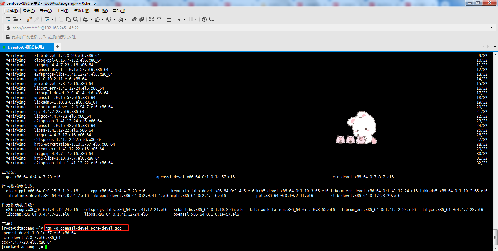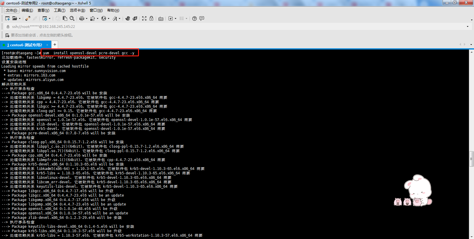 - 在xshell中执行yum install openssl-devel pcre-devel gcc -y命令