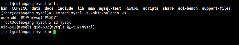 - 跟nginx一样,创建一个名为mysql的启动用户