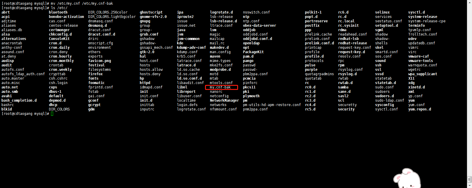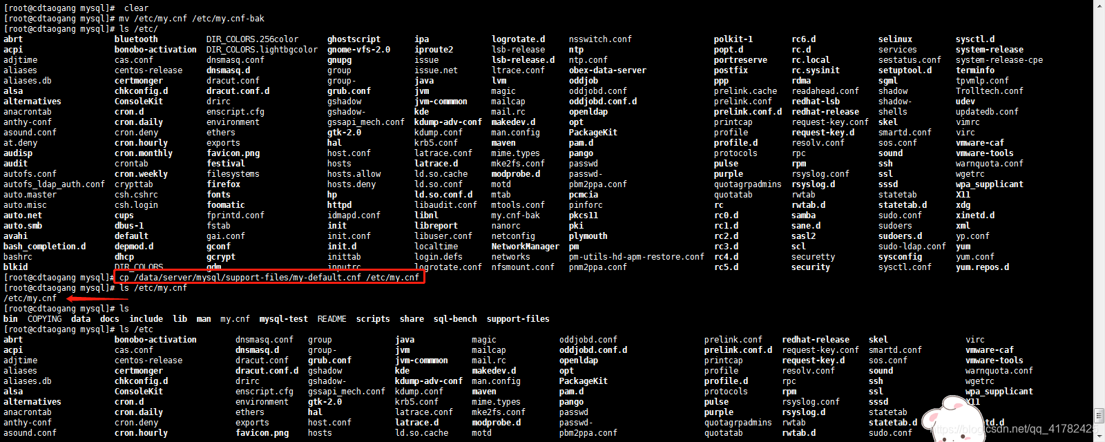 - 首先将etc/my.cnf文件重命名为my.cnf-bak