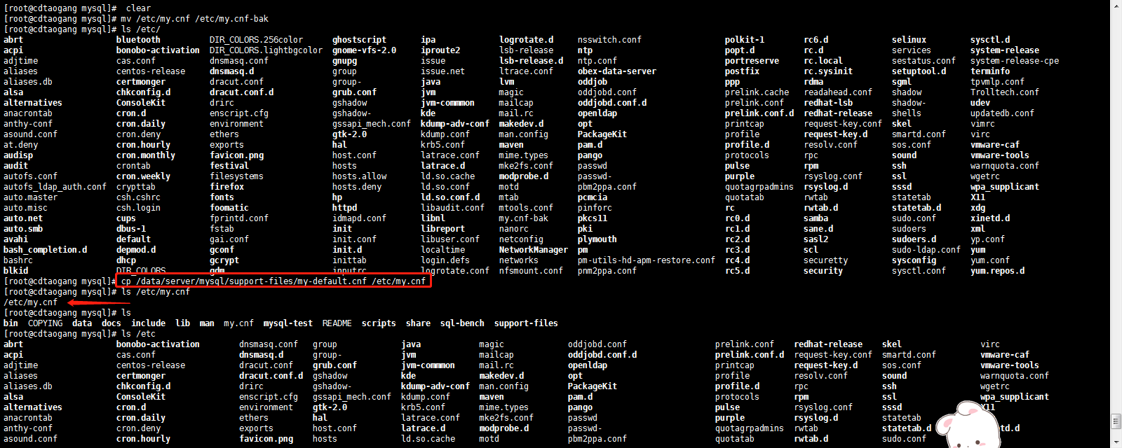 - 然后将mysql中的默认配置文件拷贝到etc目录中