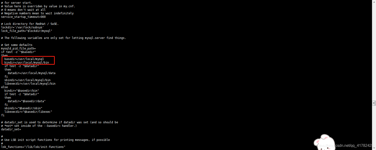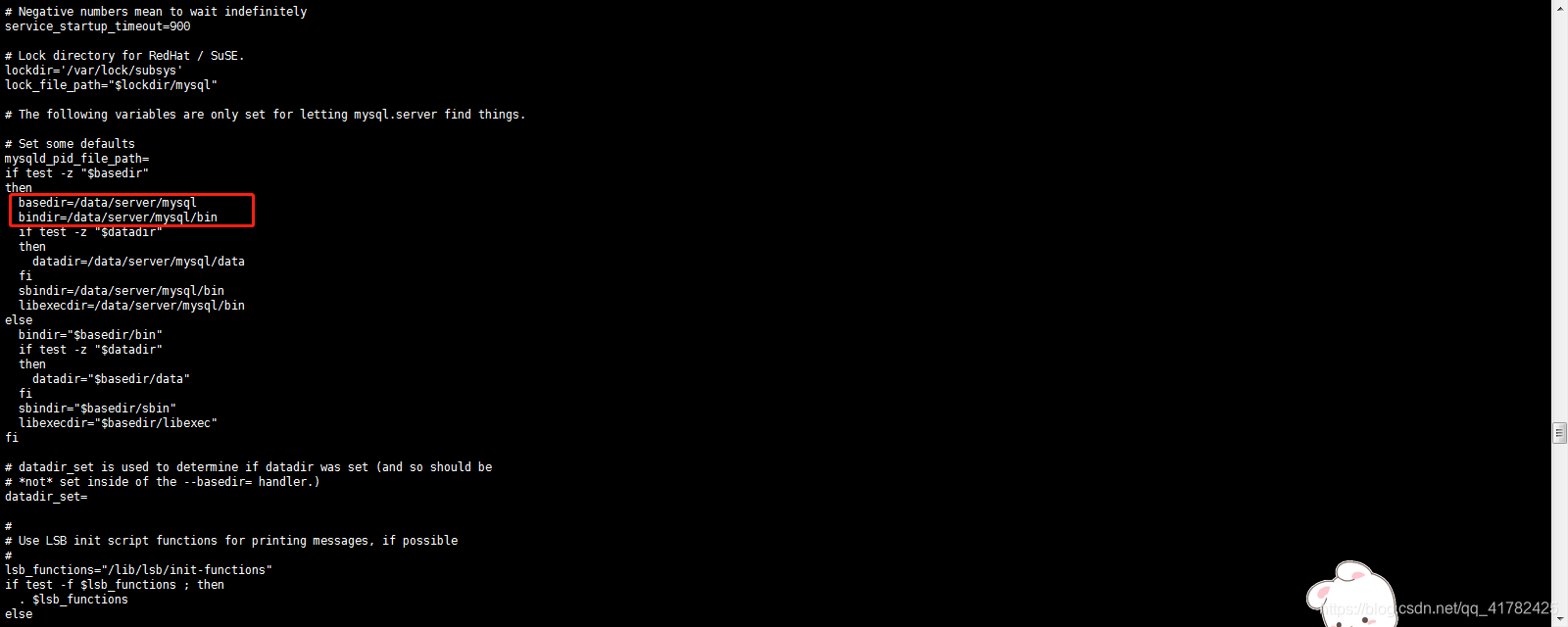 - 通过cat命令查看/etc/init.d/mysqld文件以及/data/server/mysql/bin/mysqld_safe文件,发现其中/usr/local/mysql的路径与我们实际mysql的路径不一致,所以需要对这两个文件中涉及到/usr/local/mysql路径都需要进行修改