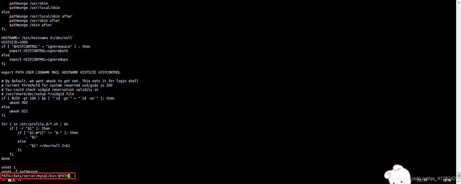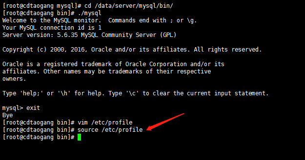 - vi命令编辑/etc/profile文件,在末尾加上PATH=/data/server/mysql/bin:$PATH