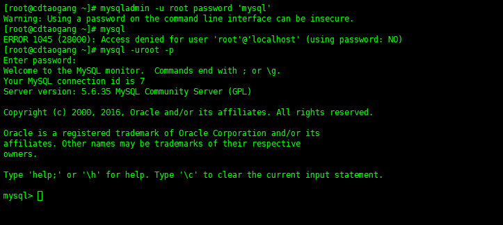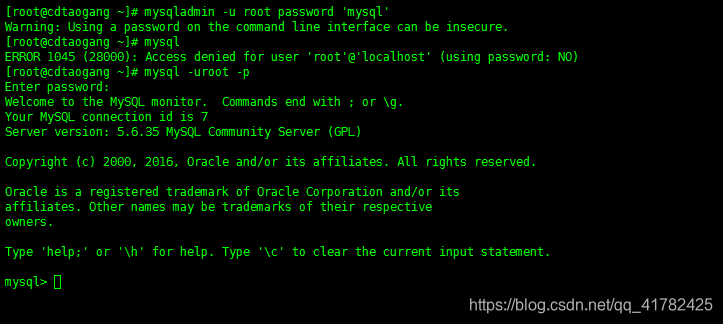 - 当第一次安装完mysql后是没有密码,所以直接敲mysql就直接进入数据库了,设置密码成功后,就需要输入密码才能进入数据库