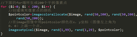 3、生成干扰点代码如下:函数-> imagecolorallocate(); imagesetpixel();
