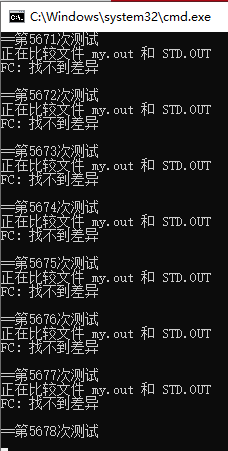 生成了对应的gen.exe、std.exe和5150.exe后,我们执行对应的bat文件即可。下面是对拍的结果截图。