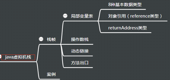 局部变量表:是用于存储方法参数和方法内定义的局部变量的存储空间,可以存储编译期间可知的各种基本数据类型,对象引用类型和返回地址(指向一条字节码指令的地址)。表的最小单位为32位,称做变量槽,如果存储大于32位则会分配两个连续的槽空间。
