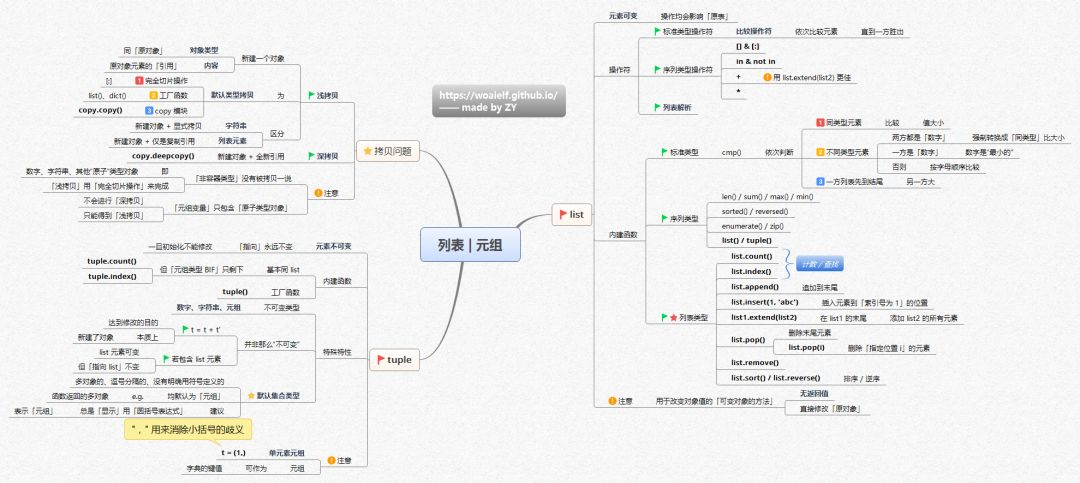 关于列表|元素,首先说拷贝问题,分深浅拷贝两种形式。tuple的内建函数、特殊特性与list的操作符、内建函数是重点部分。