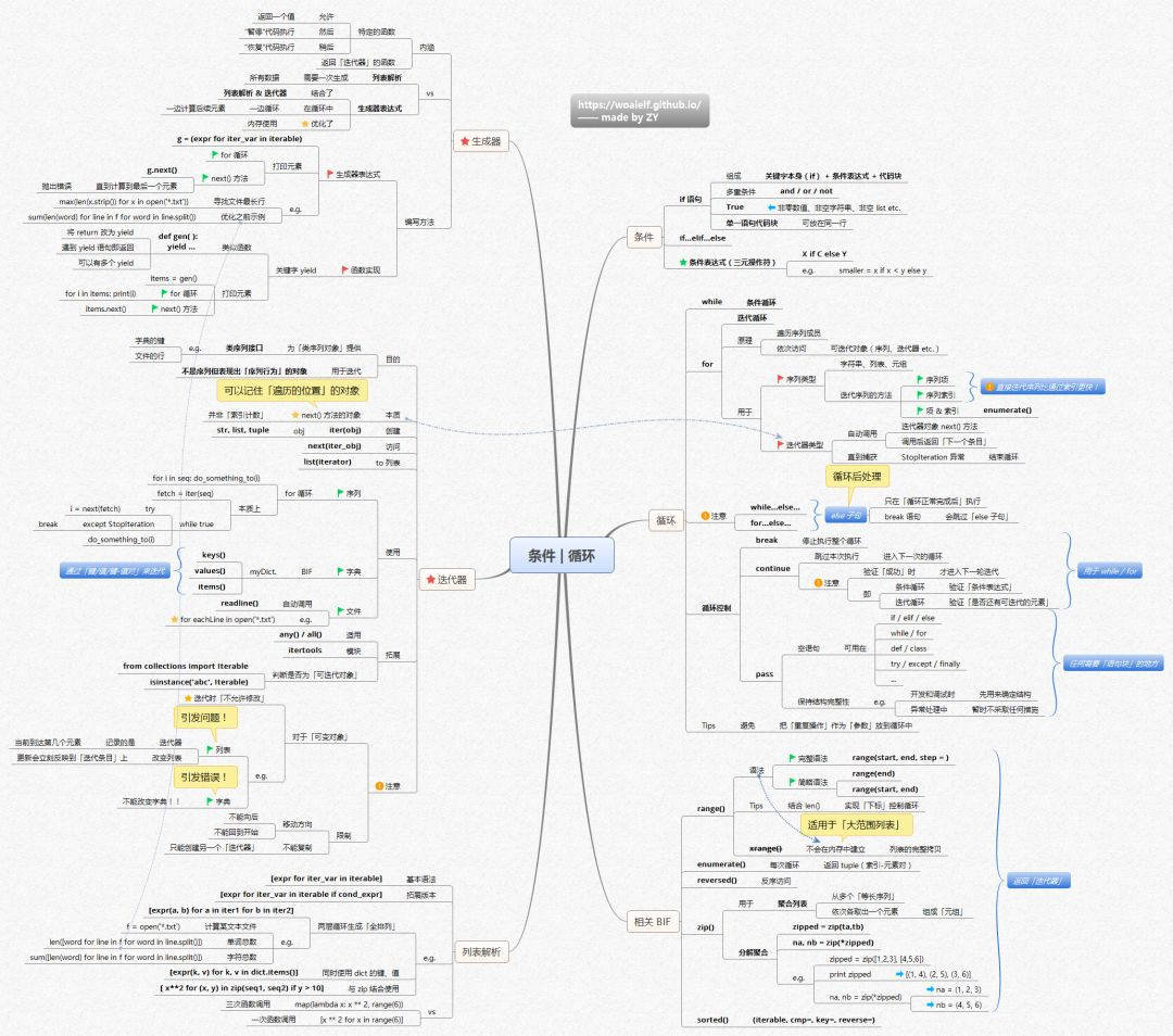 条件|循环包含生成器、迭代器、列表解析的使用、拓展,相关BIF、if语句循环控制也能够快速掌握重点。