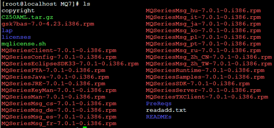 [root@localhost MQ7]# tar xf MQ_7.5.0.2_TRIAL_LNX_ON_X86_64_ML.tar.gz