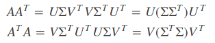 (3)A的奇异值(Σ 的非零对角元素)则是 AA^T 或者 A^TA 的非零特征值的平方根。