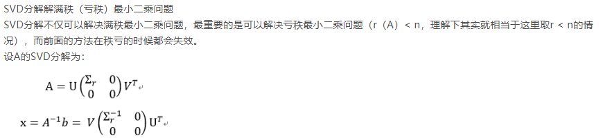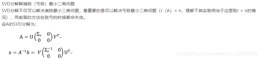 SVD分解解满秩(亏秩)最小二乘问题