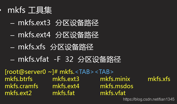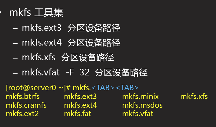 4.格式化文件系统 mkfs.ext4 mkfs.xfs blkid