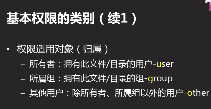 其他人:other 除了所有者.所属组以外的用户