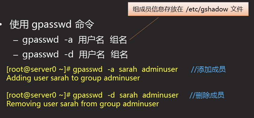 [root@A ~]# gpasswd -a kaka stugrp #将用户kaka添加到stugrp组
