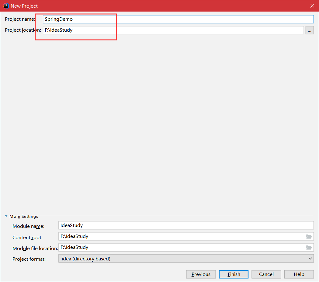 5.这里给项目命名,修改存储路径,点击Finish。