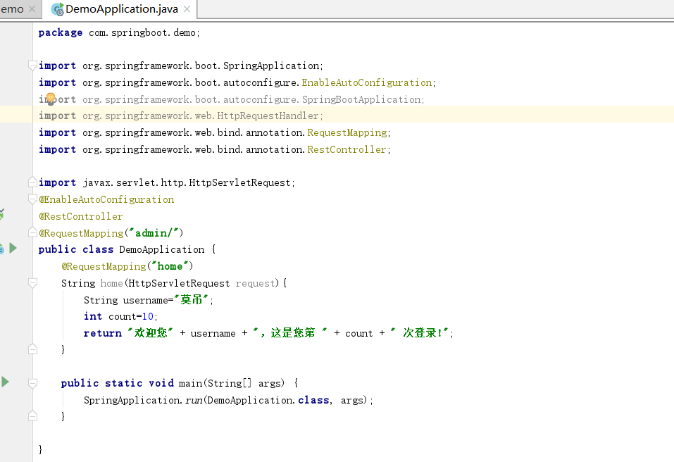 7.这里我将DemoApplication.java作了简单修改实现我想要的功能。