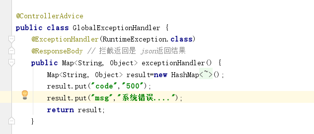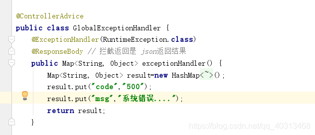 注:@ControllerAdvice 定义全局异常处理类,