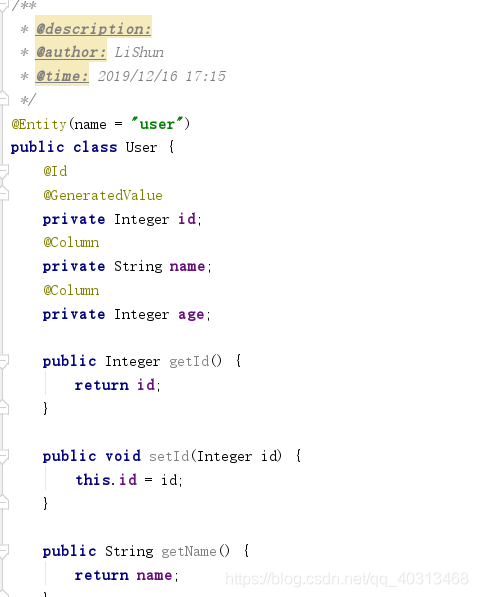 部分实体类: