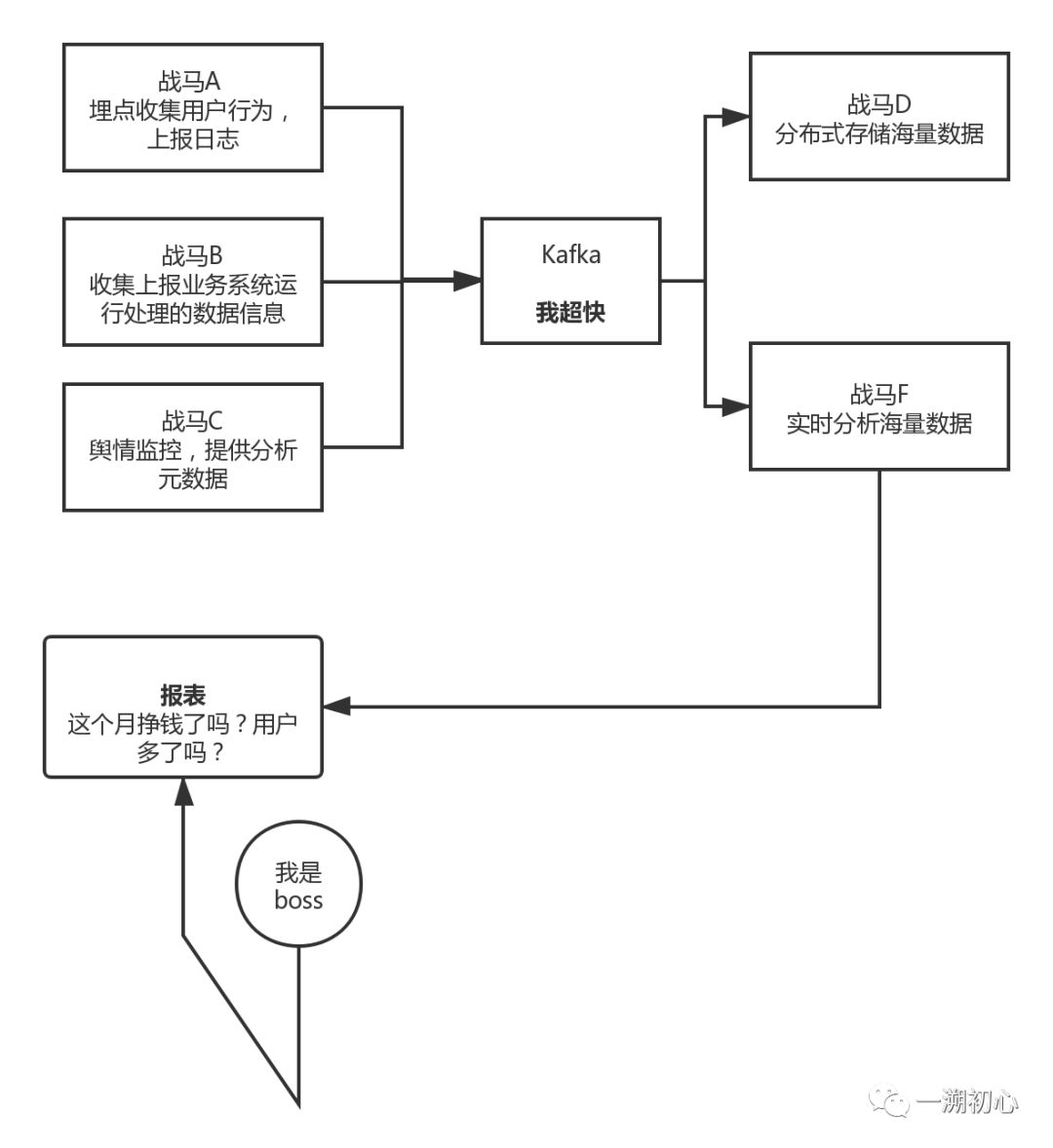 一家牛逼的公司,总是会出动许许多多的马车,不,是像始皇帝那样的战车,一剑指,万马冲。那么,大家跑着跑着,数据源源不断产生,总是会成为信息孤岛,数据得流通呀。怎么获取数据,分析数据呢?