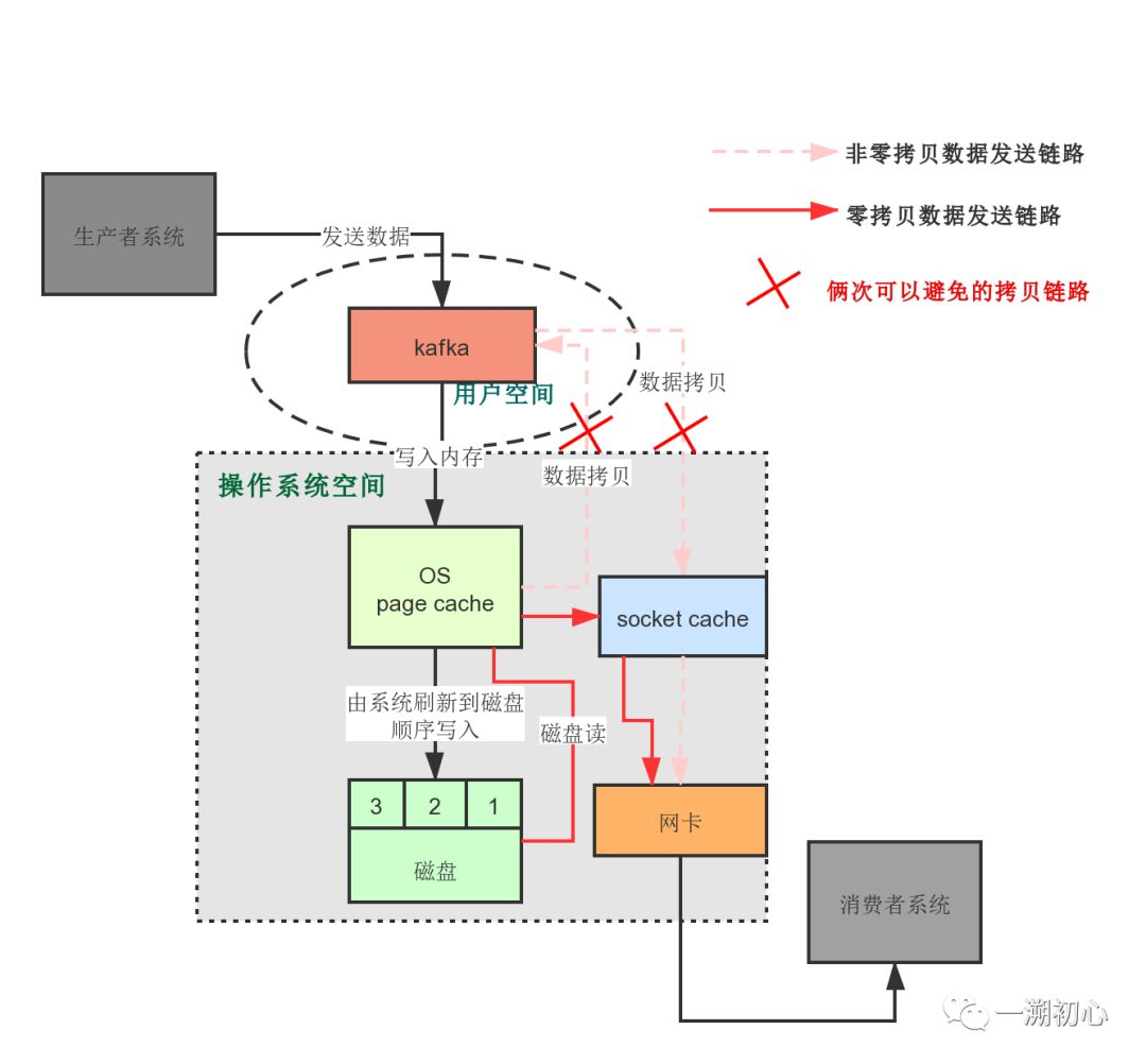 3.利用sendfile机制,实现零拷贝技术,优化了Kafka进程和操作系统的上下文切换的次数,减少了数据拷贝的次数。