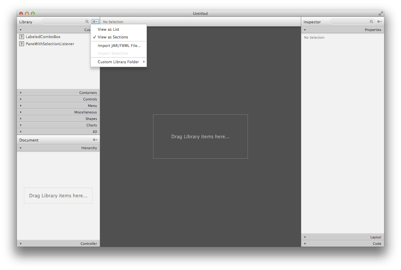 Annotation) as a jar file - In SceneBuilder, activate the drop-down button next to "Library" in the top of the left pane: