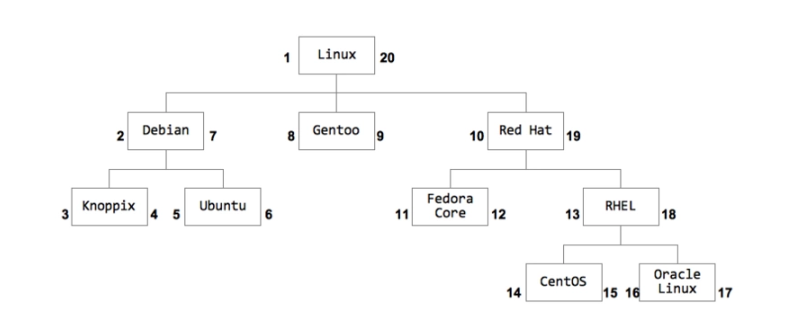如果我们要在 Gentoo 之后增加一个 Slackware,这个新节点的左右编号分别是 10 和 11,而原来从 10 开始的所有编号都需要加 2。我们可以: