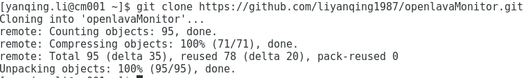 将openlavaMonitor的源码从github上clone到本地。如果你的linux不能联网,你也可以Download ZIP包,传到linux端然后解压。