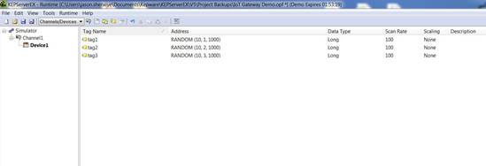 在KSE中,首先构建一个带有通道/设备/标签的模拟器系统。